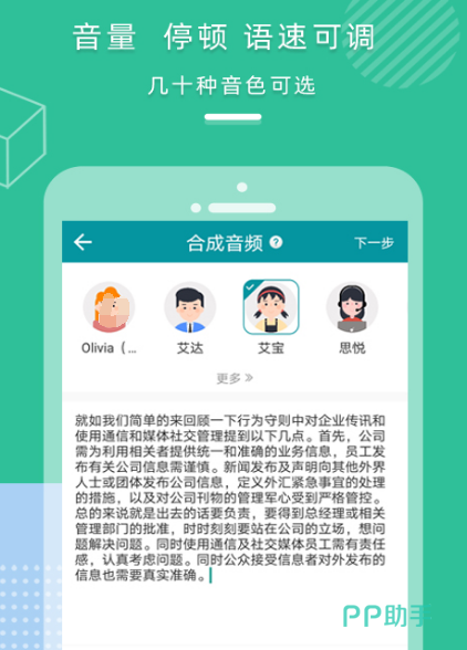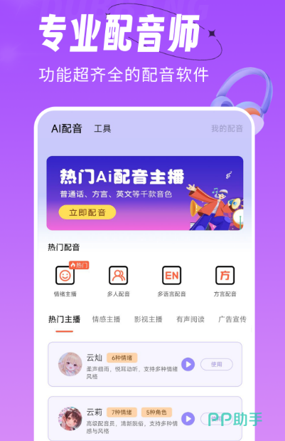 作为一款专业的配音合成软件,有多种声音可选,比如男生、女生、童声、英文等,操作非常简单,将文字导入,秒变真人语音,还支持添加背景音乐,调节音量大小等等,该软件具有多个功能,并且还支持方言,受到了一众用户的认可。
