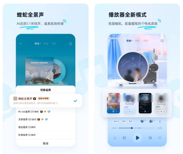 在国内是比较早期的听歌软件了,手机版本对操作也进行了一定优化。特色的蝰蛇音效在行业内也是领先的,能够让大家瞬间沉浸陶醉在音乐中。我们也可以在这里购买到一些数字专辑,还可以利用软件的唱歌练歌功能将手机变成KTV。跟随时代潮流推出的AI歌手更是可以让大家进行创作,聆听一首歌曲的其他不同演绎。