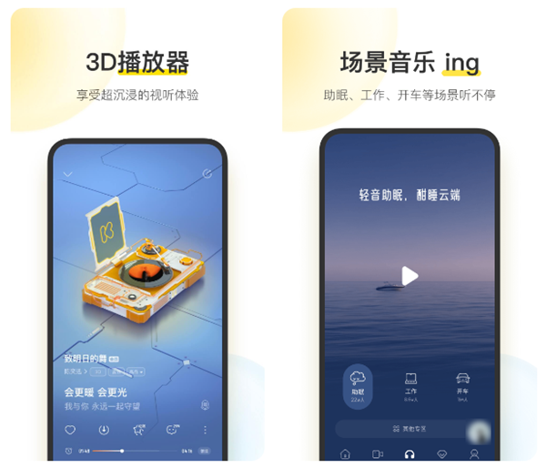 一款带有多种特色功能的音乐平台,本身的曲库也是非常庞大,不管是最近流行的歌曲还是一些比较经典的老歌都可以轻松找到。在这款软件中还可以根据主题、场景来获得一些歌单推荐,体验还是相当不错的。除了歌曲之外,这里还提供了丰富的有声资源供大家享受,比如一些电台节目、有声小说等,可以尝试一下。