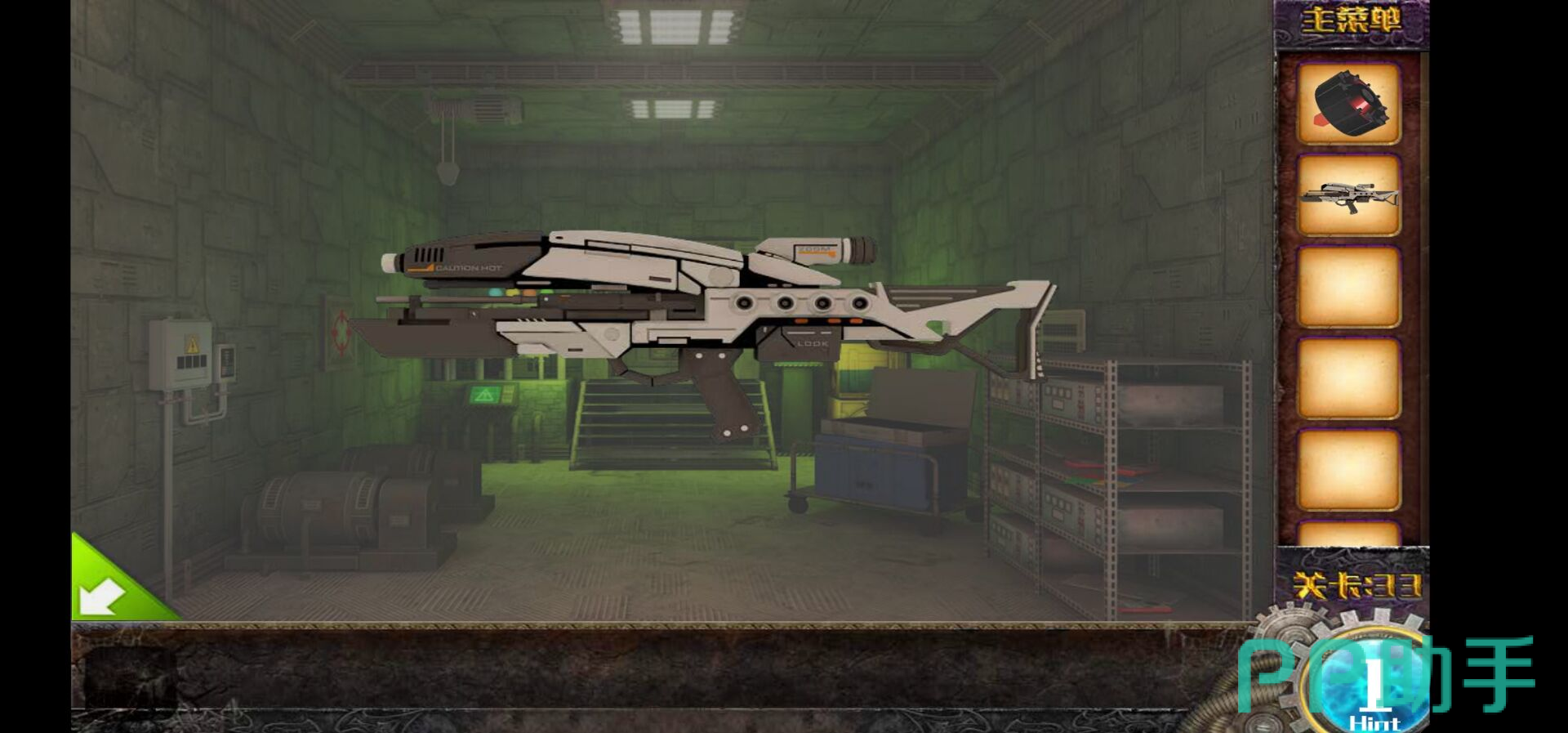 3、点击组合枪和在置物架上找到的道具,点击左边墙上的靶子用枪对其射击,获得密码,随后打开左边提示高压危险的密码锁,获得一个把手道具。