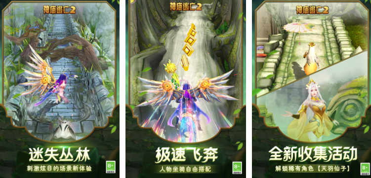 《神庙逃亡2》的画风比较刺激,开局就是一声惊天动地的嚎叫,这时你就必须把握时机,要操控自己的人物从神庙中逃出去,倘若不幸被怪物抓到,就会导致游戏失败。如果你能顺利地从神庙中逃出去,这一路上还会有非常多的障碍物,比如过不去独木桥、拦在路路的石头、湍急的河流等等,当然,这条逃亡的路上也并不是只有困难,还会有相应的道具和金币,只要你看准时间收集即可,是一款考验玩家的手眼协调能力的游戏。
