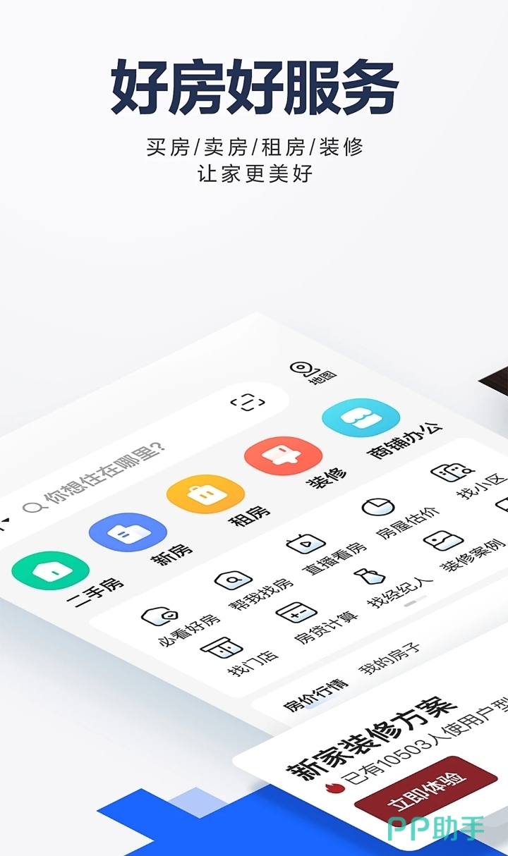 在软件上可以搜索房屋直接看实景图、效果图、3D图片等等,看房方式多,房的类型、价格、面积、地址、产权……都会给用户标注清楚,选购省心,找房方便,买房好用,租房不可少的一款app。