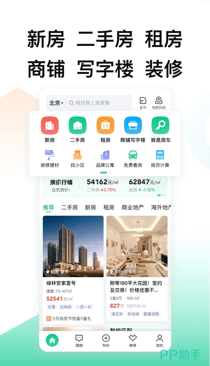 专门租、买房屋的app,二手房、新房、写字楼……任你选购。房价有高有低,大家可以根据自己的需求和经济挑选房屋。有无电梯、是否在售、配套如何……房屋的信息都会标注清楚,方便大家选择。