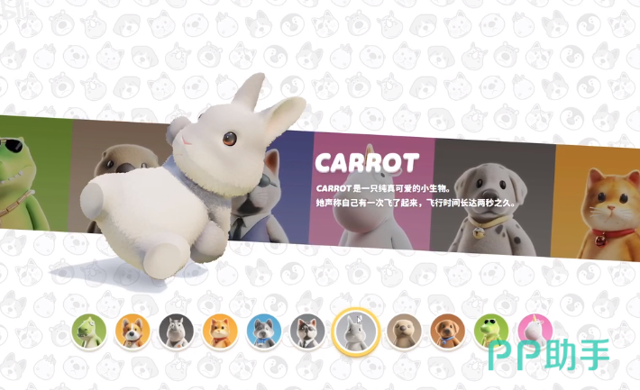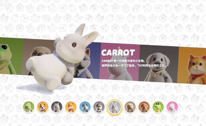 carrot:该角色是一只萌萌哒的小白兔,本身体型比多数角色都要小,所以利用这一特点你能够更好的闪避攻击,同时它本身的观感对比其他动物来说也会更萌。