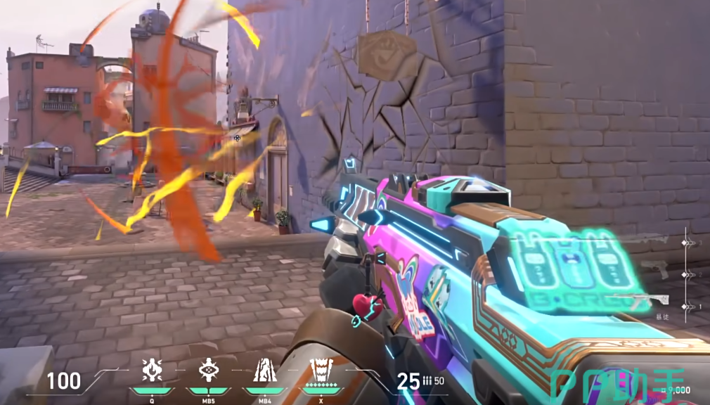 装备物变成致盲弹,填载好之后按下攻击就可以发射到指向方向,同样是可以穿墙的。等到其爆炸的时候,没有移开视野的玩家都会短暂丧失视野。这个招式不论是攻击还是在给队友做掩护的时候,都很好用,但是时间有限,而且对准头要求会比较高。