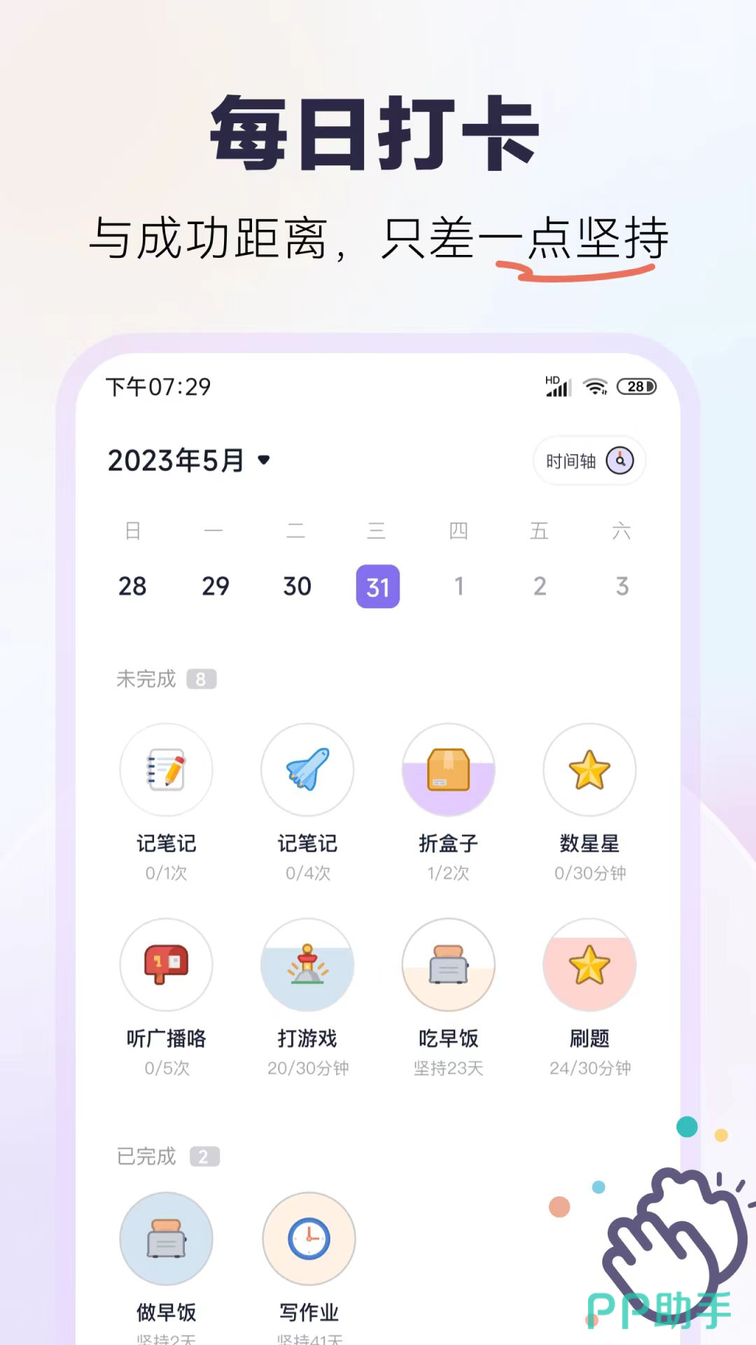 以上就是关于可以打卡自律的软件的全部内容啦,一款适合自己的打卡软件,可以更好的帮助拯救拖延症,告别拖拖拉拉,轻轻松松成就良好习惯,培养更成功优秀的人才。清晰规划日常生活工作和学习,让生活进行有条不紊,感兴趣的用户们抓紧到豌豆荚平台上下载以上几款软件吧。