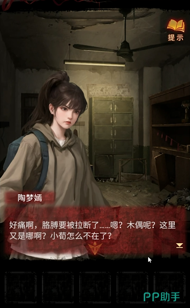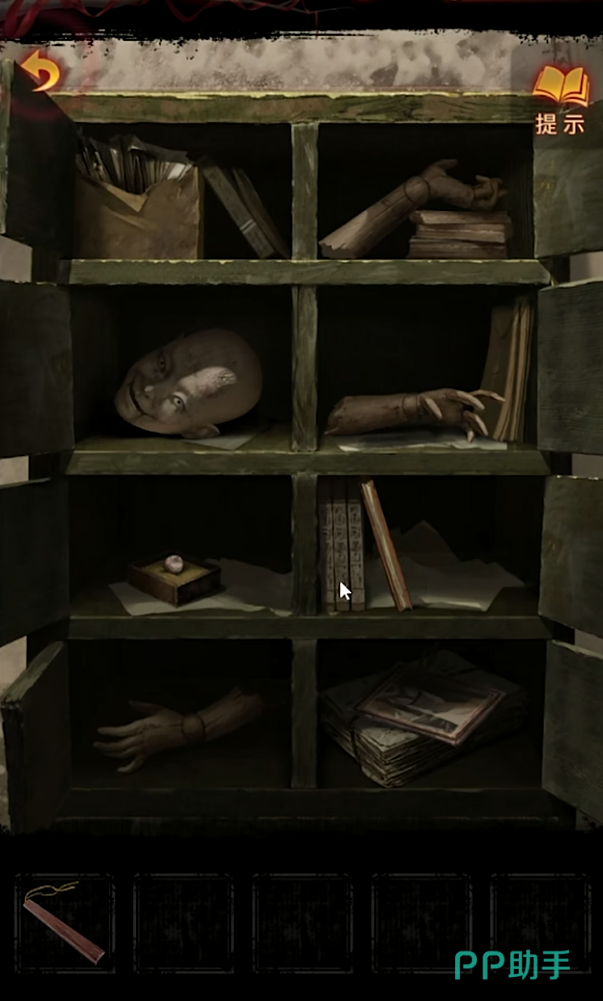 成功打开密室之后,探索场景得到一个红色的盖头,然后使用背包里面的钥匙打开中间的大抽屉就可以拿到一个拳头形状的摆件、纸条和摇把,阅读书籍内容获得通关解密信息,然后回到最初始的房间里面把拳头放在剪刀手旁边就可以猜拳获得马鞭,然后再根据墙壁上的纸条和监控中荀元丰的画面来调整灯光,帮助荀元丰成功解密通关手势打开电表箱。