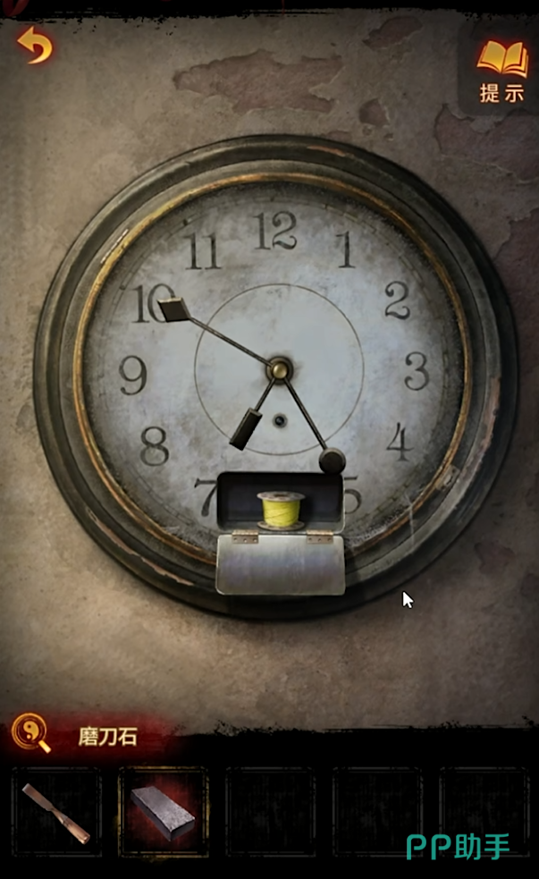 在盒子里面拿到了一个磨刀石和一把刻刀,回到缝纫机下面,使用刻刀把插座上面的污垢铲掉之后就可以插上电源获得道具,然后回到最开始的房间里面把东西放在柜子的奖杯上面,获得一个照片,然后回到大厅里面将照片放在照片墙上,然后再调整照片墙上面的位置就可以拿到一把钥匙打开最开始房间里面的监控室了。