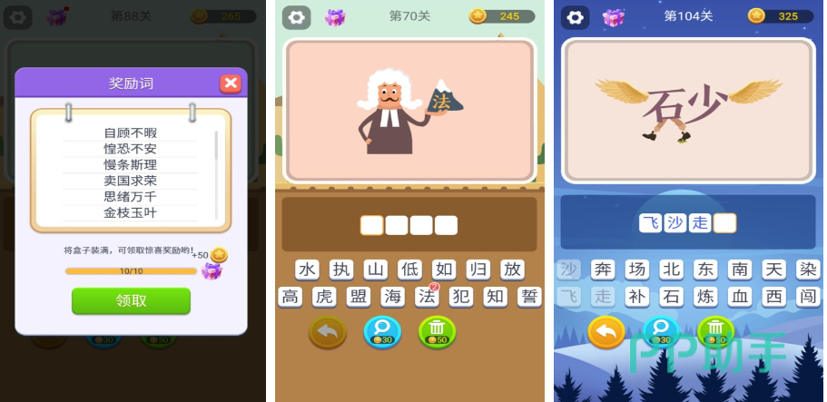 这是一款难度适中的看图猜成语游戏。小编之所以会推荐它,是因为系统给出来的图片很有意思,而且十分形象,很能锻炼我们的逻辑思维能力,当你成功理解图片意思,并在下面众多文字中选择正确的填上时,那种成就感是无法想象的。最重要的是游戏关卡数量很多,让你一次性玩个爽去!
