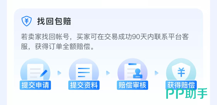 最担心的就是账号会不会被找回或者是遇到了封号的问题怎么办,平台考虑到大家的顾虑并推出了安心购的保险服务,正规保险公司提供的专业保险服务,一旦出现任何的问题,即使是交易完成了也是可以及时申述追踪的,根据情形不同会给你对应的赔偿,最高可以拿到全额的赔付呢