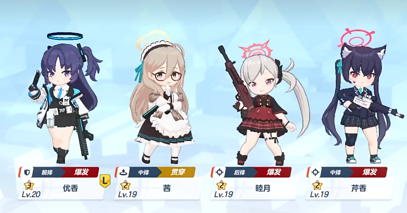 首先是优香,没什么好说的,官方白送了一个两星坦克角色,自带高额护盾效果以及不错的生存能力。本身输出手段方面虽然有些弱,但考虑到管家婆本身是重装甲加上爆发的组合,以及掩体的恢复效果,还是非常推荐各位玩家们作为主力前期培养的。