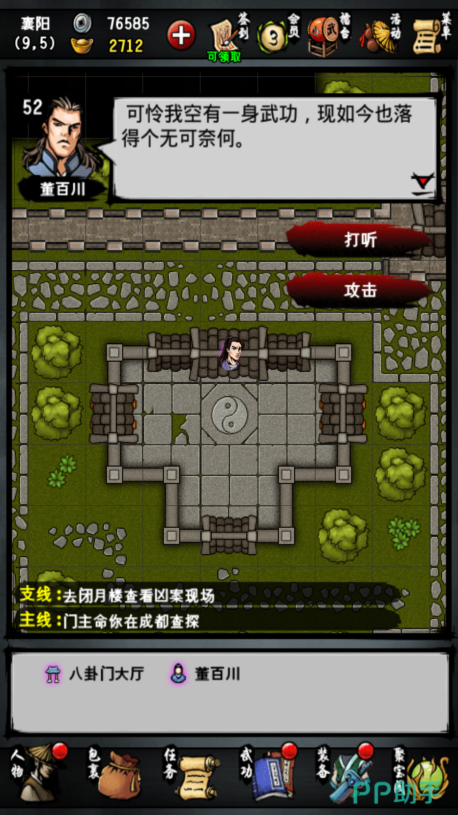 今天小编为玩家们带来江湖风云录八卦门怎么触发的详细攻略,八卦门的任务是后续S级武功伏羲刀法的前置任务,而任务的触发也是有隐藏条件的,下面小编就将这些隐藏条件告诉大家。