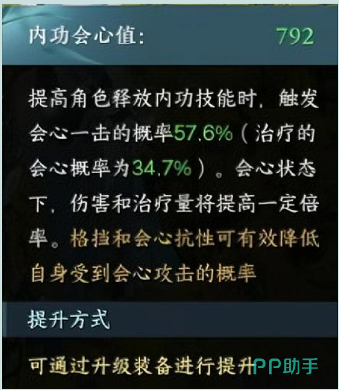 该角色的内功在触发会心的时候会增加奶量,所以角色需要能够有足够高的内功会心这样,会有更显著的提升,大家多多注意自己内功的副词条吧。