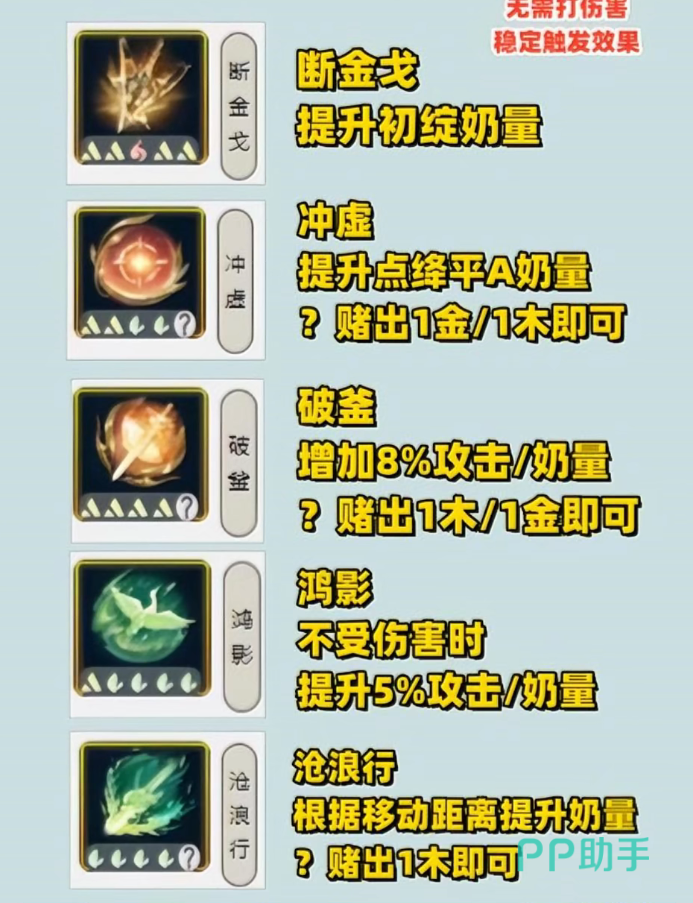 首先是上图的组合,可以提升玩家的群体回复的能力的同时还有解控保命的能力,有抬升队伍血量的能力的同时还能让玩家的生存能力大大的提升,不过要赌出不出水,运气好会非常的强势,让队伍处于无敌的状态。