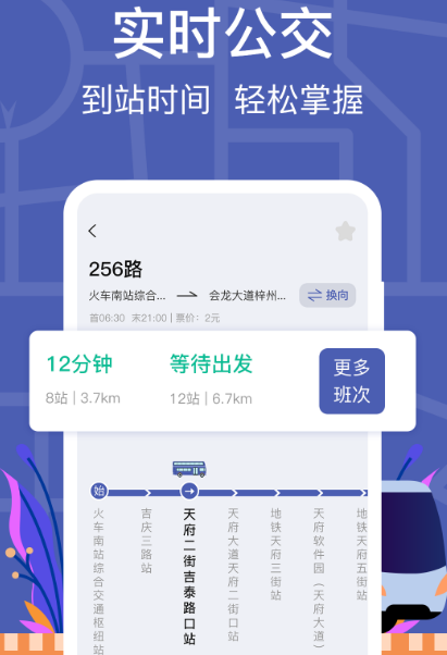 该软件推出多年来,受到了一众用户的认可,能满足用户出行的多样化需求,减少用户在乘车过程中漫长的等待,让你掌握公交车行驶到哪个位置,有上下车语音提醒功能,不用担心,该软件还提供每趟车的预计发车时间,及历史发车时间。