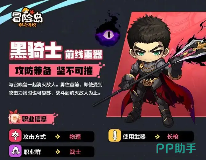 黑骑士:该职业在外形上十分炫酷,因此饱受广大玩家青睐,它的操作相对来说比较简单粗暴,使用的武器是一把长枪,所以射程方面相对一般近战职业会更具优势,另外该职业在属性层面同时具备不错的攻防数值,因此可谓是能扛能打,技能则包含突进与多段伤害手段,并且这些技能的冷却时间普遍较短,能够源源不断的打出大量输出。