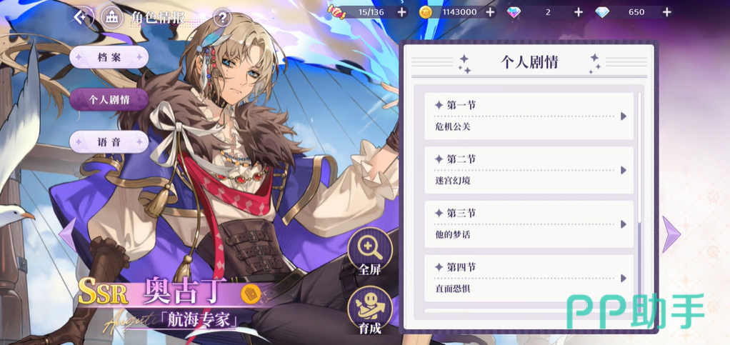 除了喜欢在大海之上进行冒险之外,生活中的奥古丁却是另外一番形象:他有着十分严重的洁癖,并且是个完美主义者,因此如果是日常比较邋遢的人会被其鄙视;同时因为他常年在海上进行冒险,因此同样对性格懦弱和客套虚伪的人十分厌恶,如果各位要攻略这名角色,就需要将这些因素考虑进去。