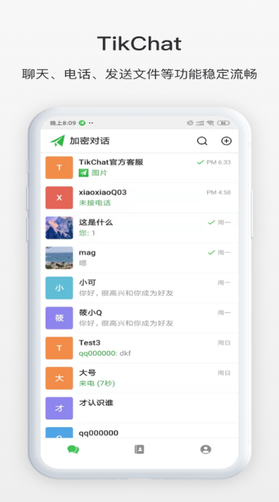 TikChatapp是一款保密程度挺高的社交神器。用户与好友之间的聊天或者通讯都会受到各种加密,保证了消息的保密性。在上面还有设置密码锁的方法,加上密码锁之后对于应用的安全程度就会更高,避免消息内容被别有用心的人偷看。有双向删除聊天记录的功能,聊天双方的消息都不可以进行恢复,拥有更好的安全体验。