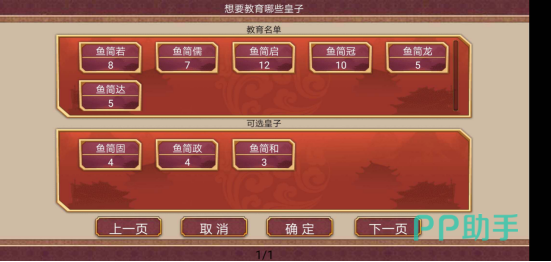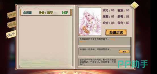 2、每一回合的前两个阶段(早晨和正午),城内界面的左下角可能会出现某位皇子的导师。点击其头像框后,即可选择亲自教导皇子。不过,玩家们要注意:个人属性值太低反而会降低皇子的数值,个人属性500+时教导皇子可加1点数值,800+时可增加2点。