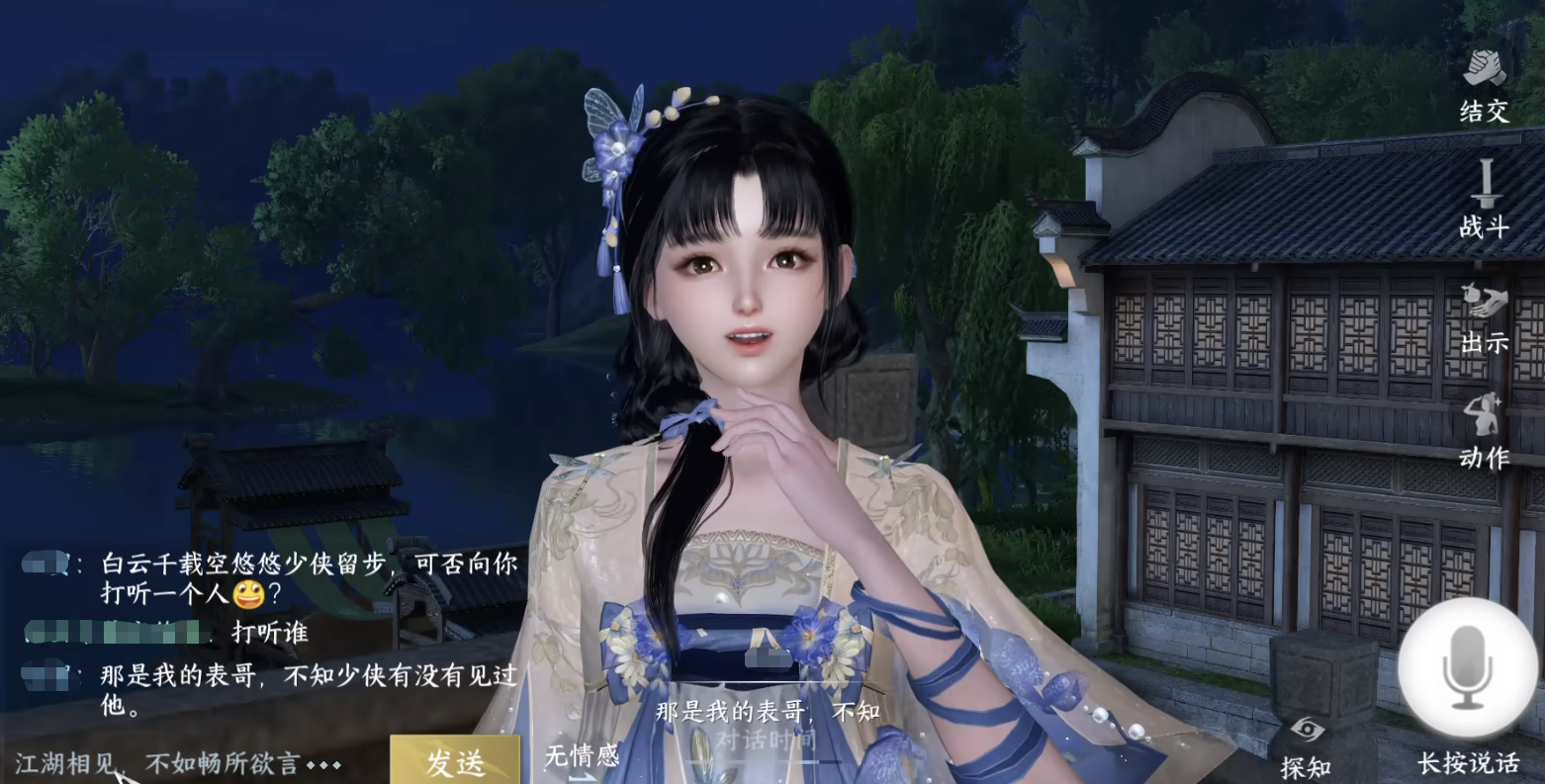 逆水寒的聊天系统做得非常有特色,和传统npc聊天不相同的是,逆水寒的并不是一问一答式的,npc会非常智能的和玩家聊天,一点也不程序化。