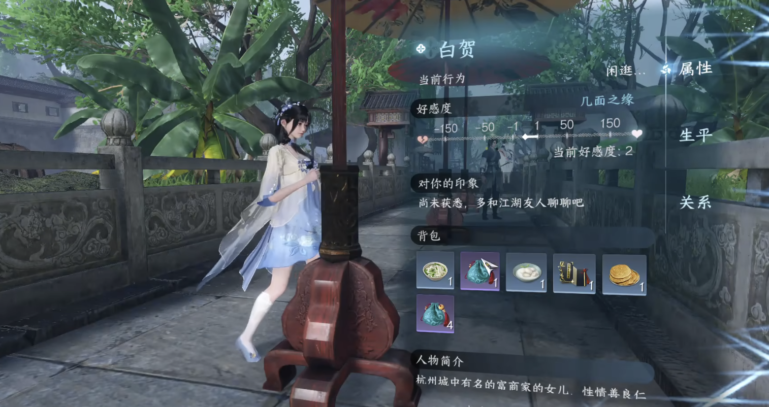 游戏设定了npc好感度,好感提升方法也很简单,频繁和npc交流,提升他的高感度。Npc的好感度达到一定值后,npc就会送给玩家一些礼物。另外,npc也是有恶意值设定的,一旦npc对玩家产生恶意,就有可能对玩家拔刀相向。