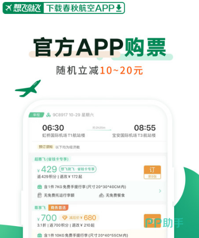 春秋航空想必大家再熟悉不过,这是很多小伙伴都在使用的航空软件,其中有订票服务,也有改签退票服务,好评率高达99%,想飞就飞各种特价机票等待大家前来挖掘。尤其是每年暑假期间以及寒假期间,各种特价机票非常全面,另外还有积分返还等,最低可享受6折优惠。