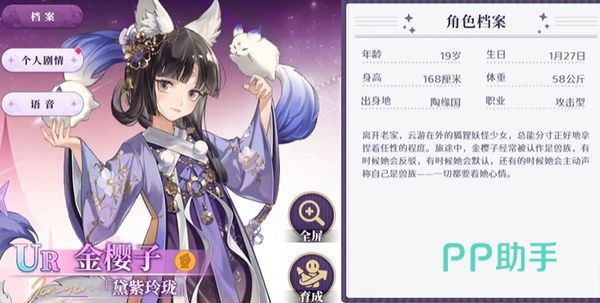 她是一个非常可爱的女性角色,身高只有一米六八,头上有一对可爱的狐狸耳朵,背后还有一个巨大的狐狸尾巴,是一个穿着汉服的美丽少女。