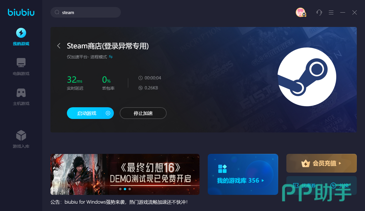 为什么要给大家推荐这款加速器呢?首先它的操作方式非常的简单,点击小编提供的链接先将其下载安装下,然后根据系统的提示完成注册,这个时候你就可以得到平台赠送的24小时免费加速特权,紧接着在搜索栏输入动物派对就能看到对应版本了,或者你也可以自己搜steam这个商店平台,启动加速摁键就可以去玩游戏去了。