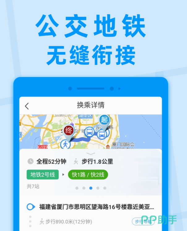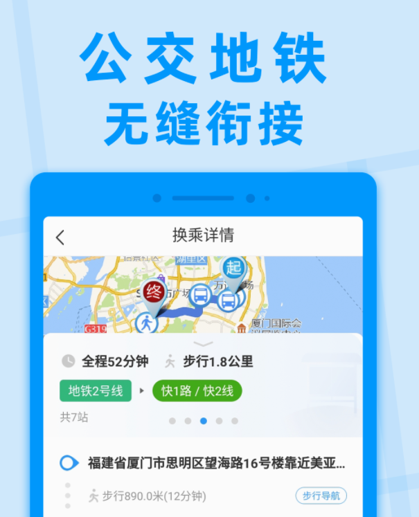 能通过定位查询自己身边的公交车信息,也能输入其他城市的名字查询当地的公交车,能为你提供的信息有发车时间、到站情况以及距离有多远,只需输入两个位置就能生成多条公交乘坐方案,里面会有提供的距离最短、价格最低、步行时间最短等推荐线路,这样大家就能根据自身时间来安排。