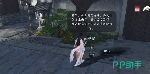 接下来,大家来到杭州,在(1020,916)坐标附近找到npc恬恬,在他身旁走动一下就可以触发与之相关的奇闻,任务需要一个洗面药,可以在胭脂铺购买,接着跟随任务提示找到西域商人,用三个铜币购买两份西域烤肉,将其中一份烤肉交还给恬恬,然后返回西域商人处,可以看到多了个躺在地上的老者,将剩下的烤肉交给他,然后把烤肉架交给西域商人,就可以得到任务道具羊皮纸。最后大家只要带着这个羊皮纸回汴京找李大人,就可以完成人间译语官的全部任务了。