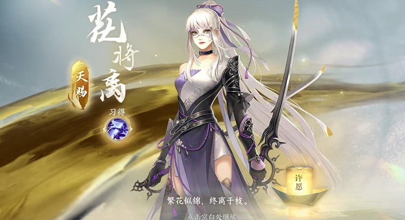 那么接下来来看看霜天幽影在游戏中是怎样的一个技能:当玩家使用这个技能后,首先会进行一段位移,在移动的一瞬间角色拥有无敌帧,此时敌人的一切攻击都会被玩家所闪避,而在位移结束后,角色会进入一段时间的持续闪避状态,此时敌人的一切近战攻击都会被玩家闪避,而如果敌人用远程攻击,那么玩家不但可以闪避此攻击,同时还可以对使出远程攻击的敌人自动使用花影斩进行反击。