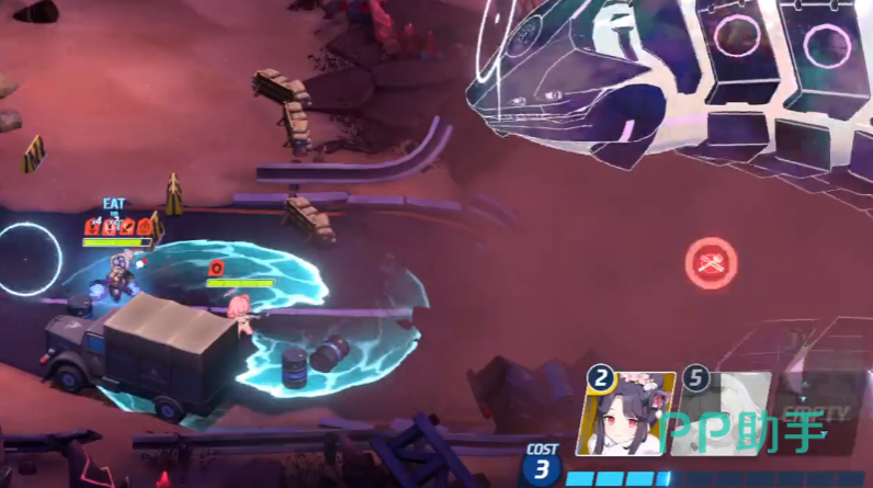 除此之外,霍格还会以召唤物的形式对学生们造成伤害,例如另一个EX技能,【侵蚀之柱生成】,使用这个技能后,霍德会生成一根侵蚀之柱,这个侵蚀之柱会令周围一定范围内的敌方单位COST回复力降低350,至多叠加一层,侵蚀的范围会随着每十五秒而扩大一级。这个技能同时也是玩家们所最需要注意的技能,高额的COST回复力降低会使玩家们所使用的血色和功能无法释放技能。而解决的方法就是通过控制技能来对其进行影响。具体解法是玩家们可以使用带有群控技能的学生,对HOD和侵蚀之柱造成攻击,并使这两个单位的黄色圆环计量条到达十秒钟,那么它们就会同时进入300%倍率的易伤阶段,在这一形态下, 霍德和侵蚀之柱自身所拥有的90%全局减伤效果将会大大削弱。