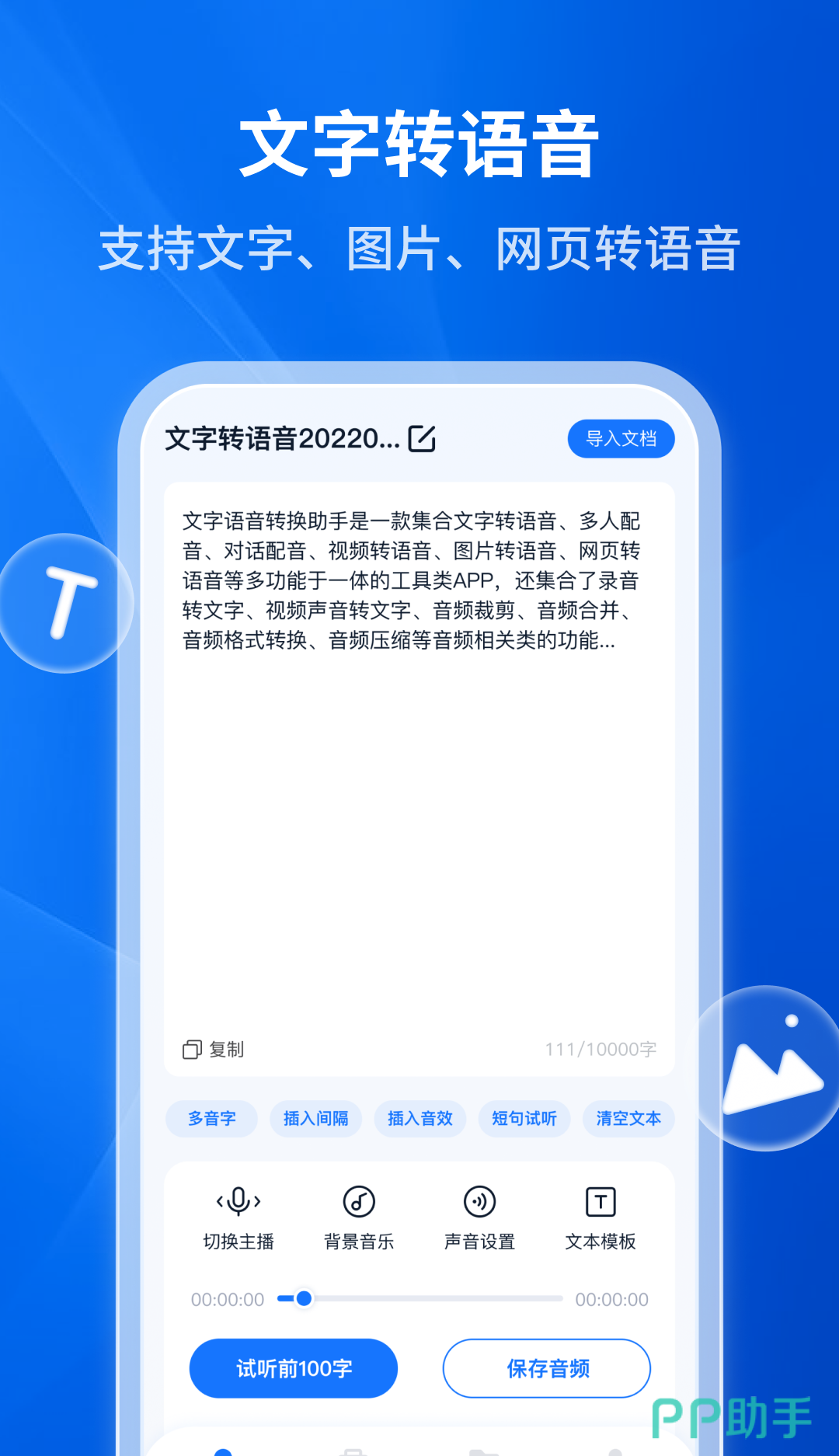 文字识别和朗读配音专用的APP,适用于生活中多种场景的需求,实时保存文件与分享,采用的是智能文字的识别技术,能够准确的将文本转换为语音,可对一段话设置多种配音音效和场景音效,内置100多种语音播放包。