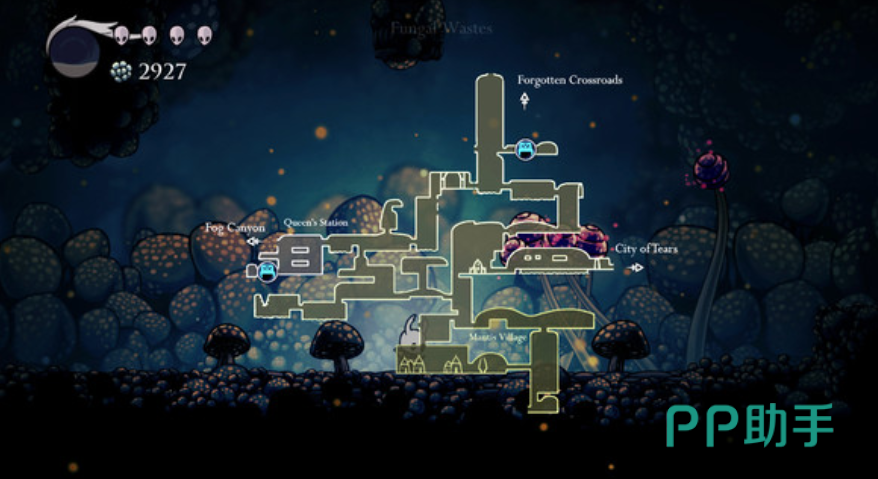 游戏的世界由几个具有独特主题的区域组成如泪城,螳螂村等,玩家拿到跑路技能后可以自由探索。快速旅行通过鹿角站实现,玩家也可以连接到隧道电车的终端。在探索新区域时,玩家需要找地图商人大蚊子购买本区域地图,并随着探索的深入使地图逐渐扩大完整。