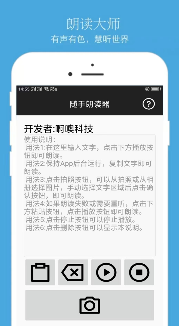 现在最简洁的朗读软件神器,有着最简单的操作界面和方便额度浮窗的设计,在软件当中是最为简洁方便的类型,适合不爱操作的用户,只要打开软件随意操作几下就能达成目的,不会有各种的广告以及非相关的内容,对于简洁至上的各位来说绝对是解放大脑以及双手的神器,当然软件也还有许多的不足,但是遮挡不住它好用的特点,还没体验过的用户赶快去试一下,使用之后很快就能感受到这款软件的方便之处,第一次使用可能会不适应,但是多用几次各位就会爱上这个软件了,绝对是各位不容错的朗读神器。