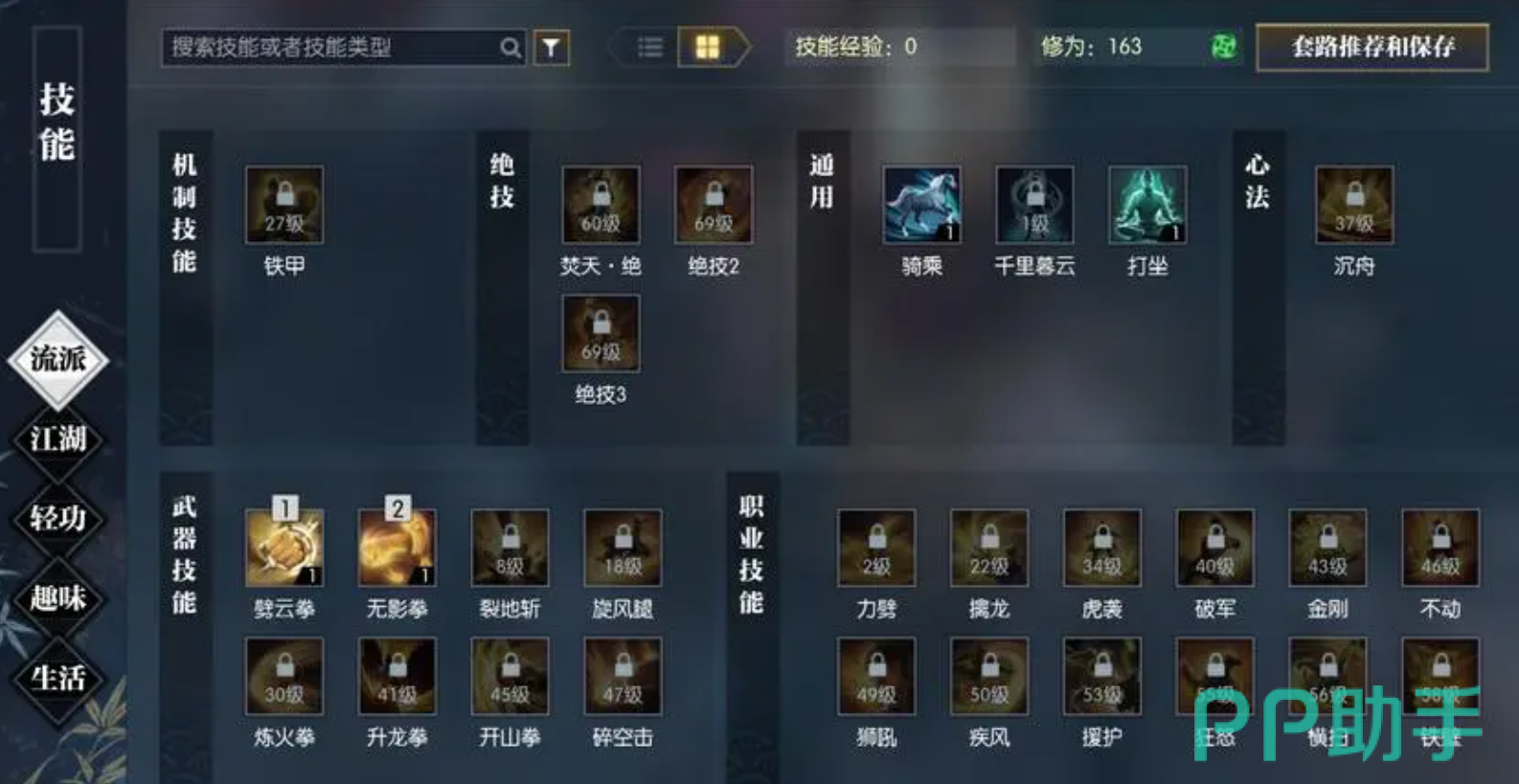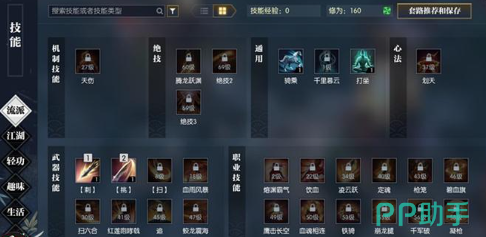 技能的获取在探索或者奇遇中都可以完成。首先点击武功再点击技能进入到探索菜单中,这里就会有四个系统开始就有的探索技能,后面的技能都需要玩家自己解锁,那么怎样获得这些未解锁的探索技能呢?其实这些技能都在一个地方,就是桃溪村,玩家们可以在这里获得很多未解锁的新技能。