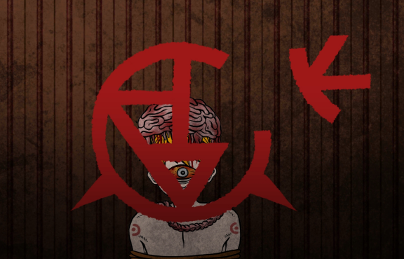 献祭部分的剧情其实已经接近这个故事的真相了,一开始给大家谜题就是因为双生子有关的献祭,这里大家想要捋清楚献祭发生什么事的话,首先是需要将墙上的标记给复原,墙上有一个红色的图案,大家将所有图案全部都拼在一起,最后成为一个圆形,圆形的中间会包裹着一个三角形,这样就可以复原了。