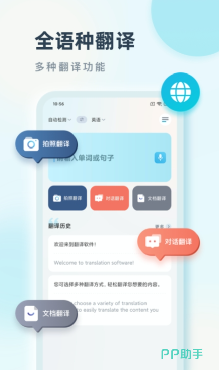 出国翻译APP是一款很强大的翻译软件。当用户出国语言不通的时候,可以进行翻译文字和语音,甚至将正在实时进行的对话进行翻译,方便用户在世界各地旅行交流。在软件上可以进行拍照、翻译,将相册中的照片进行选择就可以进行翻译,软件的翻译准确率也很高,拥有专业的售后,如果出现一些问题,可以与客服进行联系。