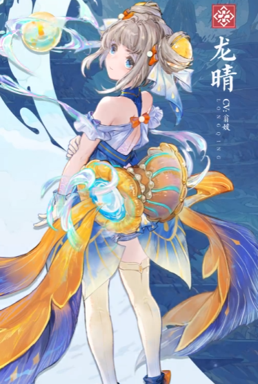 然是第三位龙晴,她是一位治疗支援类型的角色,属性为水。技能方面,她的一技能发动之后,会放出一个水流屏障,这个屏障可以保护友方所有的同调者,这些同调者在吃到屏障后被攻击的话,那所受到的伤害会降低20%,并且在保护期间屏障受到伤害的话,还会自动反击攻击者,会对攻击值造成相当于攻击力100%的水元素伤害。