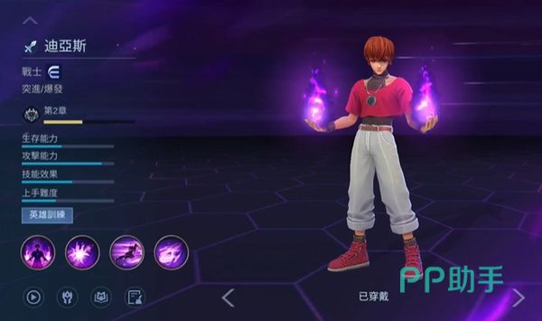 他是一名非常强大的战士,在游戏中又被叫做深渊王子,他的生存和攻击能力都非常的强,但与此同时上手难度也相对较高,他在战斗中突进和爆发能力比较强,在战斗中每对敌人普攻两次之后,第三次普攻都会对该敌人造成范围伤害,处在该角色旁边的敌人都会受到该伤害的影响,而且还能恢复自己的生命值,只要他普攻或者技能击中敌人的话,还可以获得一定的怒气,怒气值达到50%就可以将自己的技能得到强化。