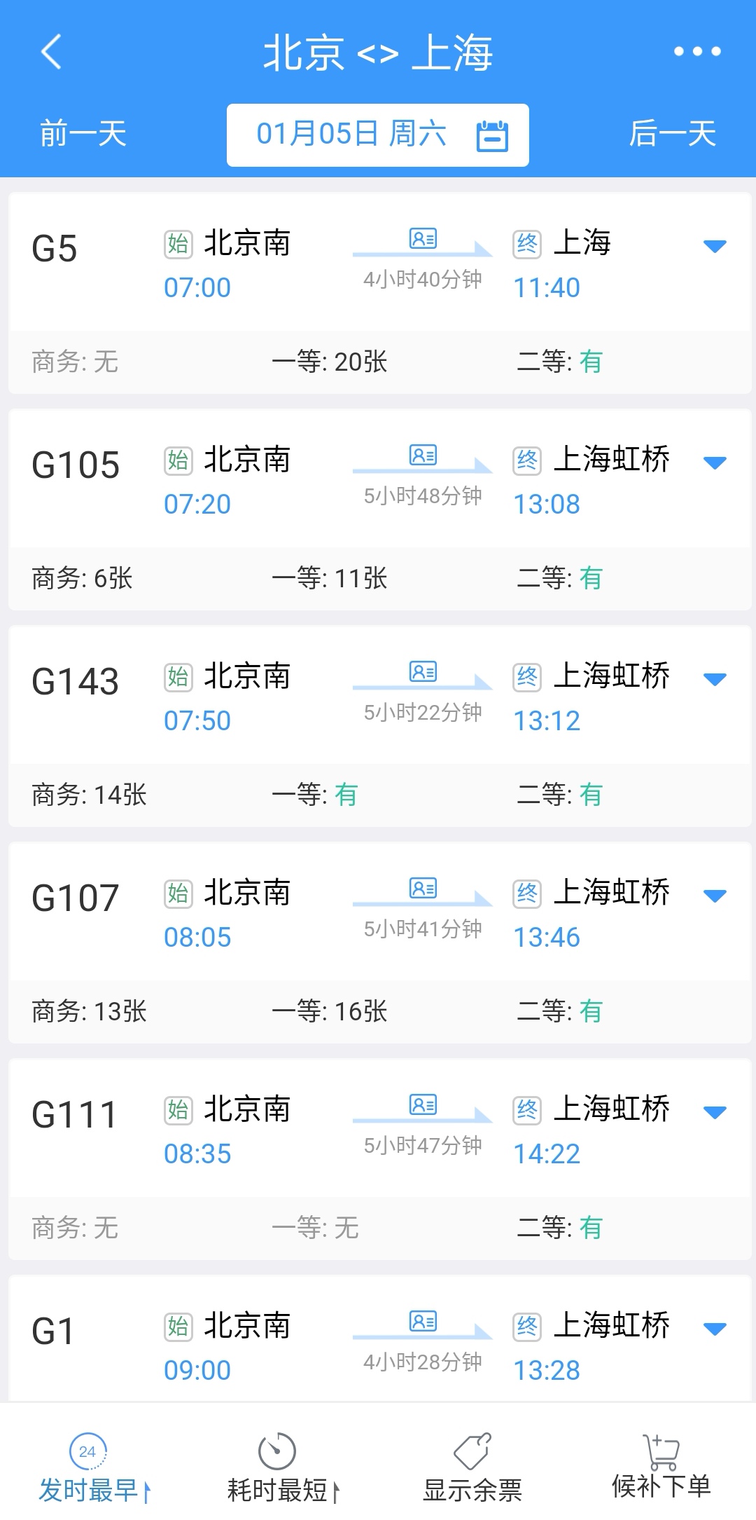 这个软件主要针对的就是高铁票的预订,一般情况下高铁票的数量比较多,因为如果路途较短的高铁速度比较快,完全可以一天跑几个来回,而且高铁相对于环境也比较整洁。