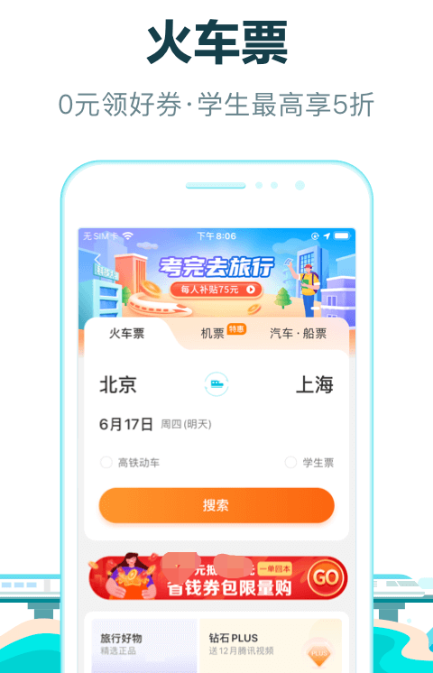 可以购买火车票、高铁票、汽车票的APP,为两亿多用户提供了便捷的出行方式和购票服务,让大家能够享受更便捷和更轻松的出行,支持全国的汽车票线上预订,也可以在线办理退票和改签。