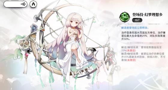 而且建议大家使用这个技能的时候,是将诺拉设定为队长,因为她如果是队长的话,在队长技能设定的上面还有额外的数值提升,她这个效果会立即提升50%,这个50%的加成,在25%的基础上面将会给大家带来大量生命恢复,可以说这个百分比的恢复效果没有奶妈可以造成了,而且后续为这个技能进行解约的话,可以在登场之后就提升35%的系数,这样后期在提升法术防御的时候,就可以叠加双抗的属性了。
