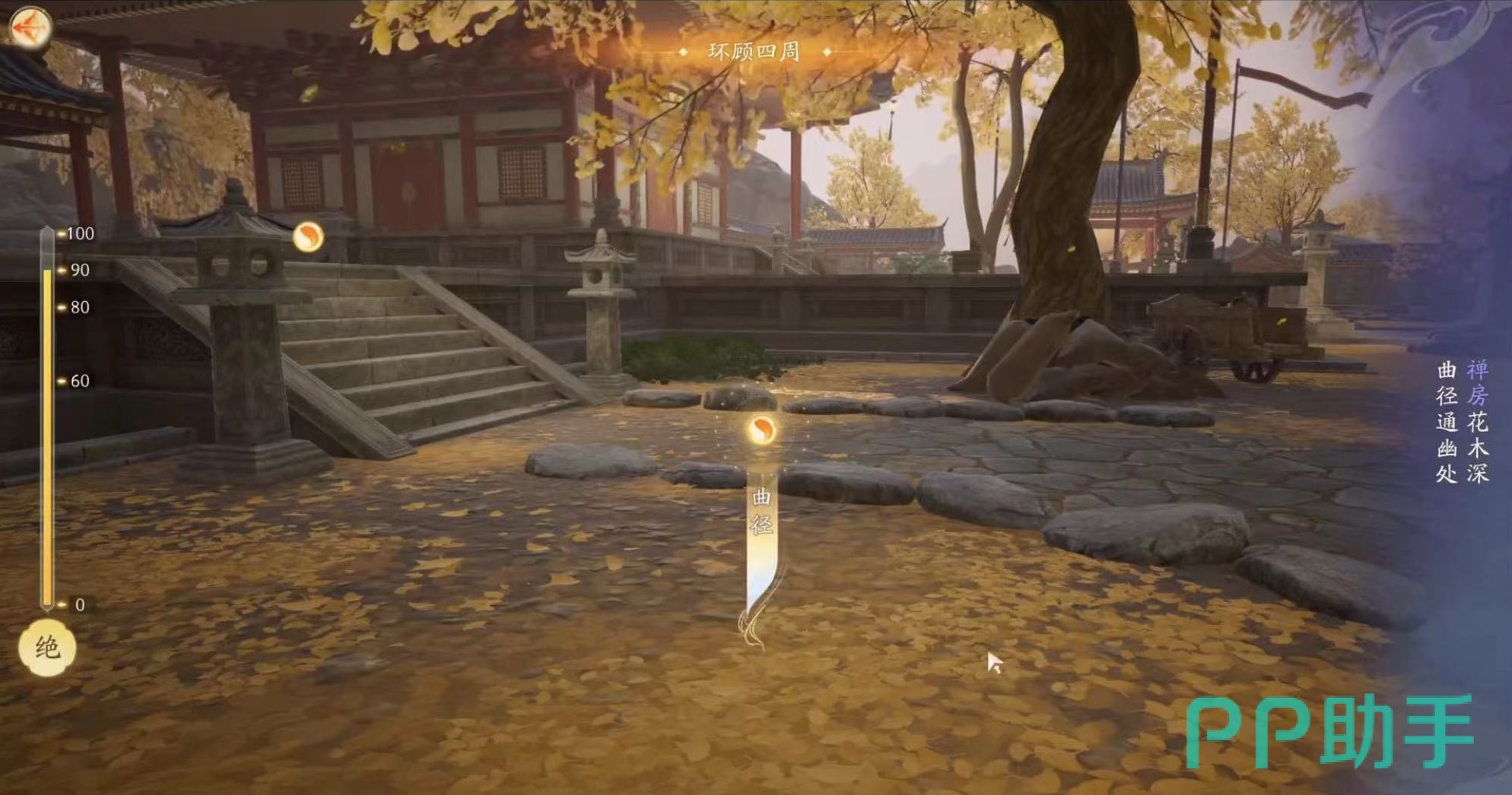 和听古曲一样,需要在特定的建筑内进行吟咏。吟咏的过程中玩家们要根据诗句提供的内容来破解一下场景。当整首诗的内容都依次点击完之后能看到正首诗想要传递的内容。通过一段生动的动画让玩家对这首诗有个深刻的印象。