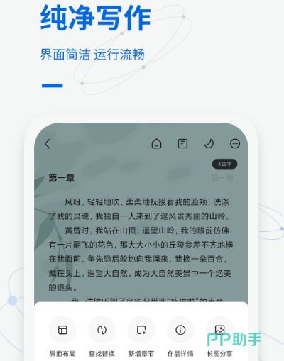 写作家是现在众多小伙伴都在使用的,作为口袋写作神器,其中有卷章大纲,现在很多用户特别喜欢写小说,下载该软件之后随时随地用手机写小说,专门为广大写手提供优质的环境。其中有数据备份功能,创作之后会自动备份,此外还会进行云服务同步备份,避免数据丢失。