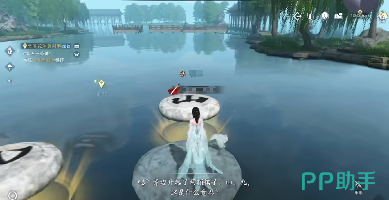 最新主线任务章节竹间花溪曾同醉里面,玩家跟随的任务指引来到小瀛洲湖畔,湖面升起两颗棋子,分别是山与九,这里代表着两条线路。