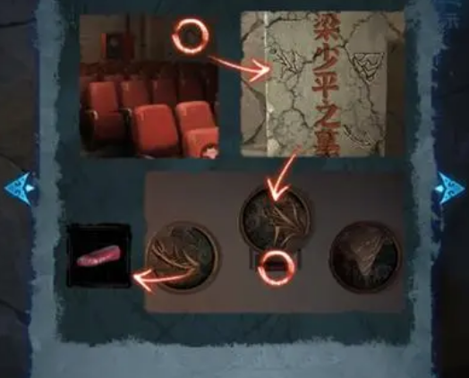 在大家拿到灭火器后,还得对准舞台上的火焰来使用,成功以后就能够获得雨伞,舞台上也会出现蝴蝶,点击解锁玉蝴蝶,而需要大家注意的是纸伞在花坛中,蝴蝶也得点击白色的那只,完成以后把蝴蝶放到墓碑哪里,就能够得到一些有价值的信息,在回到剧院把信息对这圆盘转动就可解开谜题得到绣花鞋。