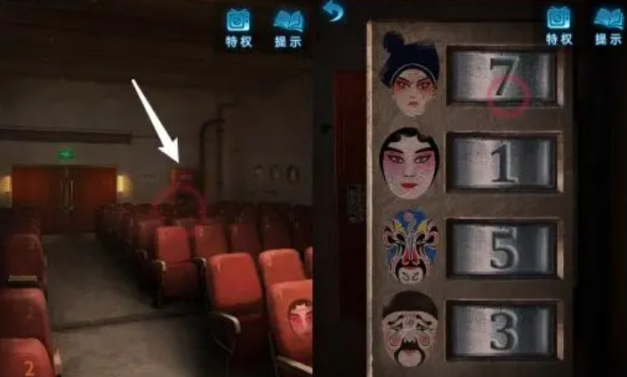 通过故事的剧情大家能发现,男主就是梁少平转世,玩家在进入新手教程以后,就会看到戏剧院里面起火,这个时候就会第一个谜题出现,想要解开灭火器上的锁,这个密码大家在座位的后面就能够找到,而大家只要买票进入就可以看到了。