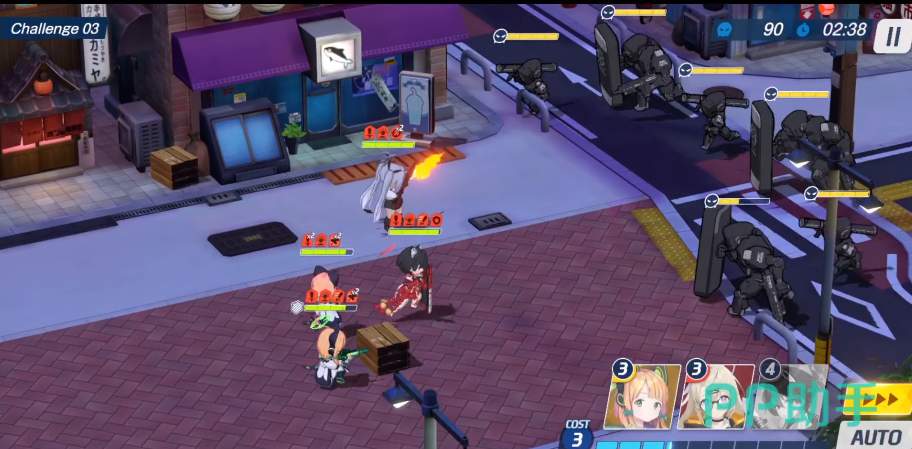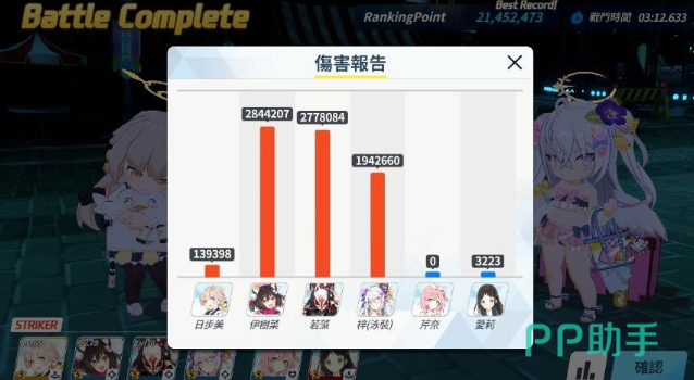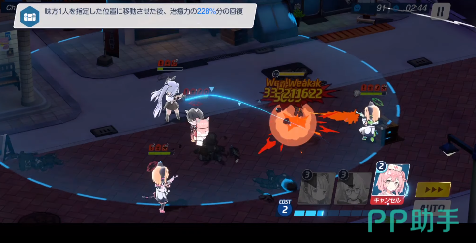 利用芹奈的技能补充亚瑠的生命值,并且通过机器人的技能来晕眩桩,避免伤害溅射到其他角色。根据敌人的状态,优先使用各个角色的技能。比如无月的EX可以包住敌人,而亚子的技能则可以在合适的时机使用。开场顺序是星野、无月、亚子和亚瑠。