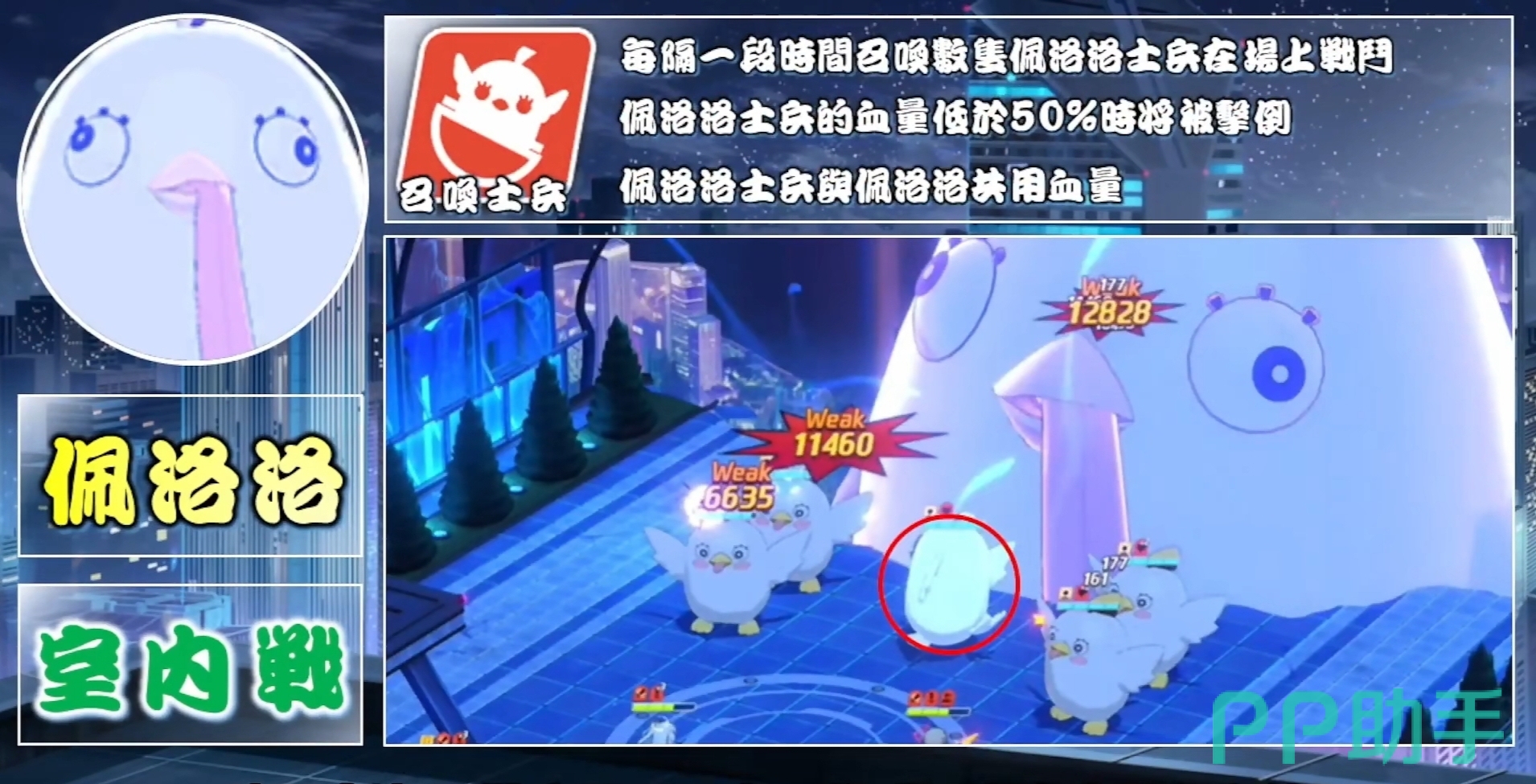 佩洛洛这一关卡首先玩家们要注意的是出场顺序的搭配,因为这一boss它拥有一个分身技能,而分身技能也是同样跟他分享血条的,所以玩家们开局可以先推出比较有输出的主c位置作为群体攻击角色,而实际上配洛洛的攻击机制也是十分好躲的,因为他的双眼会放出一道激光,当这道激光锁定玩家们的角色时,就操控角色逃跑,那么接下来是很大几率不会被他锁定的。